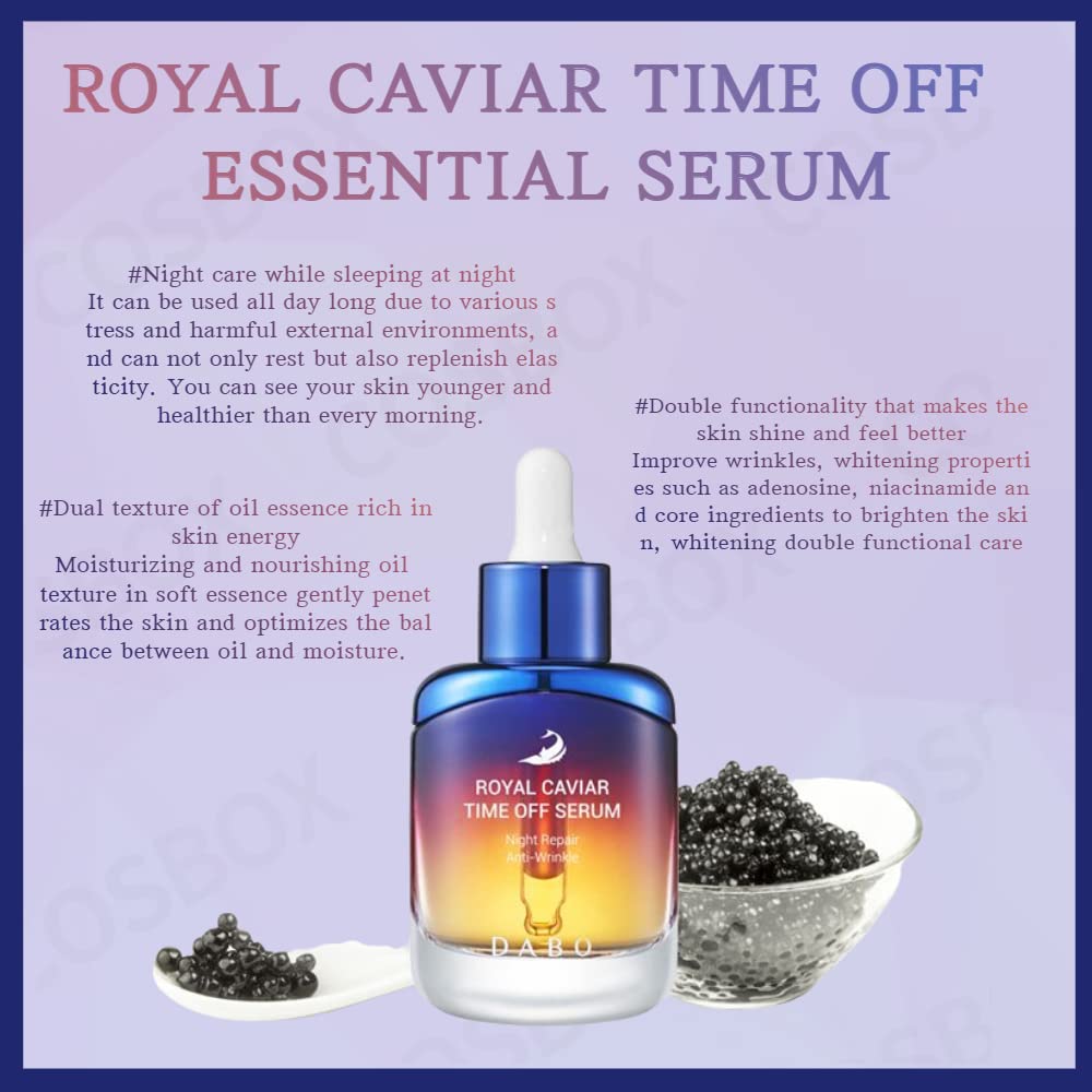 হায়ালুরোনিক অ্যাসিড: ময়শ্চারাইজিং, পুনর্জন্ম; সামুদ্রিক কোলাজেন: ত্রাণকে সমান করে, নিজস্ব কোলাজেন উৎপাদনকে উস্কে দেয়; অ্যাডেনিসিন: ত্বকের গঠন মসৃণ করে। ; ; কালো ক্যাভিয়ারের সাথে সিরামের নিয়মিত ব্যবহার ত্বকের দৃঢ়তা এবং স্থিতিস্থাপকতা উন্নত করে, মসৃণ বলিরেখায় সাহায্য করে এবং মুখের ডিম্বাকৃতি পরিষ্কার করে, রক্তনালীগুলির দেয়ালকে শক্তিশালী করে, যা রোসেসিয়া এবং লালভাব হ্রাসের দিকে পরিচালিত করে, ত্বকের উন্নতি করে।